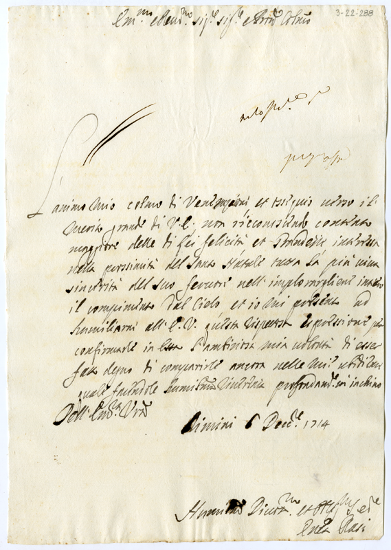Lettera di Enea Rasi al cardinale Annibale Albani (1714 dicembre 6)