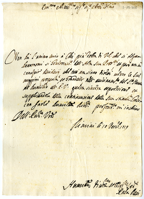 Lettera di Enea Rasi ad Annibale Albani (1719 dicembre 10)