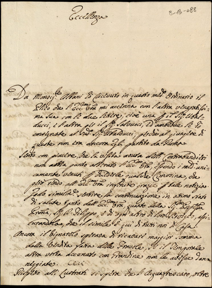 Lettere diverse ricevute in Colbordolo, Pesaro e Senigallia nel 1784