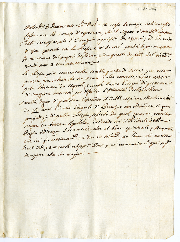 Lettera al padre rettore (1700-1721)