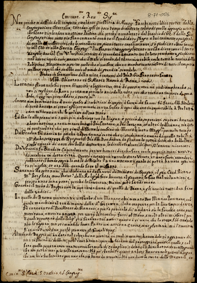 Scritture in diverse cause e avanti varie sacre congregazioni per il signor cardinale Sant'Onofrio con li voti in alcune di esse fatti da monsignor Annibale Albani suo uditore