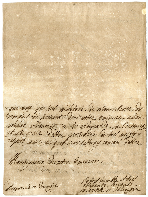Lettera della contessa di Schlangen al cardinale Annibale Albani (1717 dicembre 12)