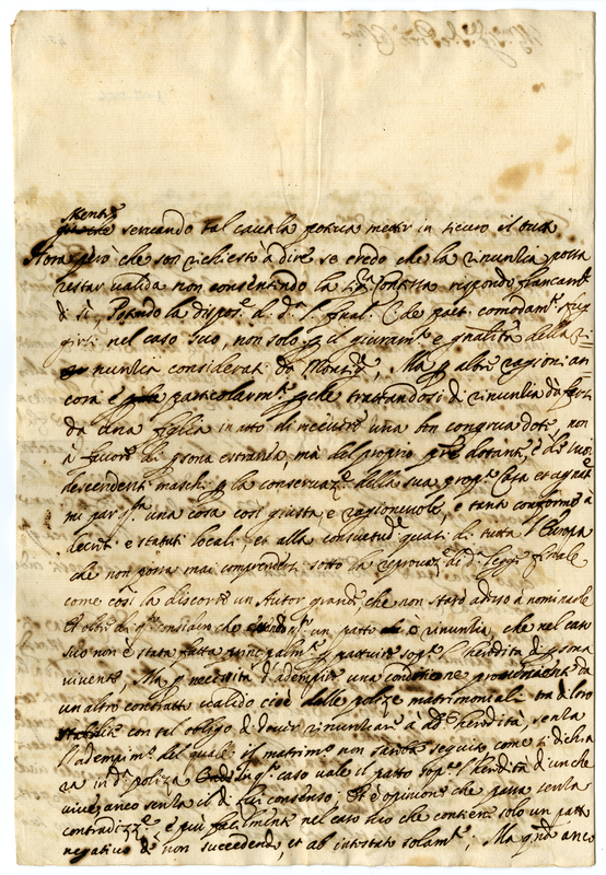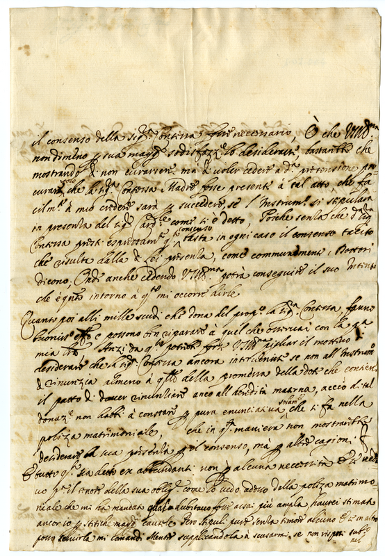 Lo scrivente assicura Carlo Albani che la rinuncia all’eredità da parte della sposa sua nuora è valida anche senza il consenso della contessa madre ed espone le ragioni