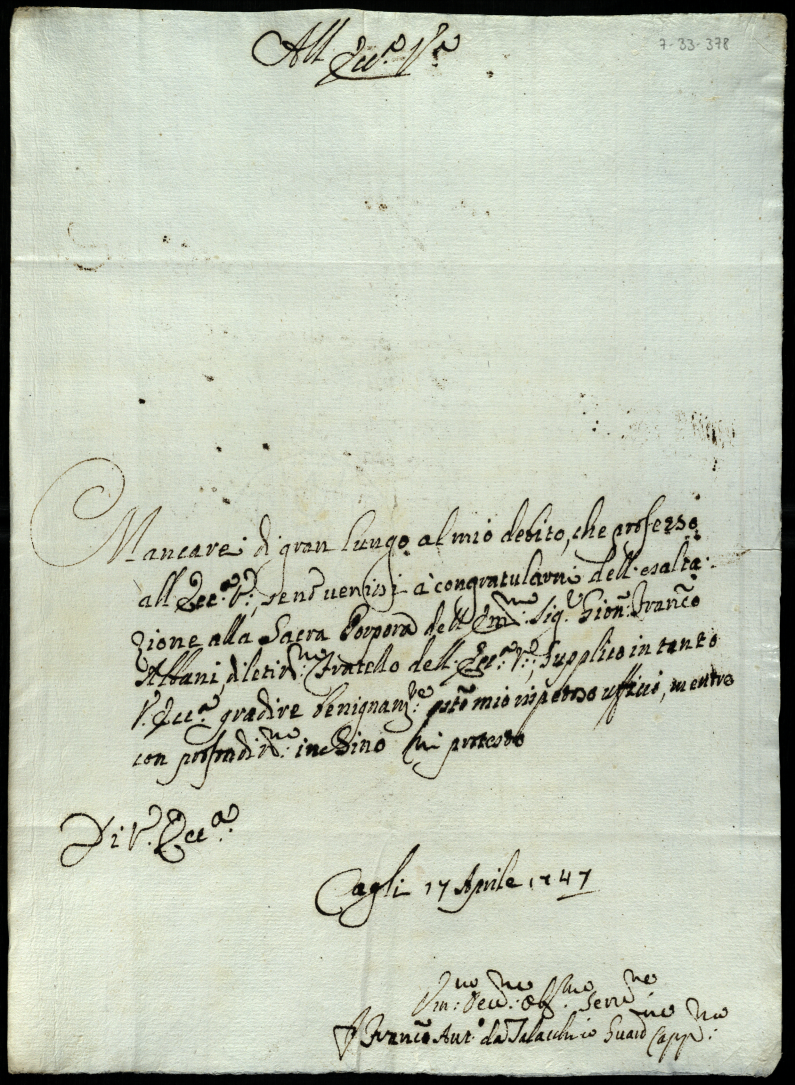 Lettere ricevute in Urbino dal Signor Principe Orazio Albani ultimo di questo nome nell'anno 1747