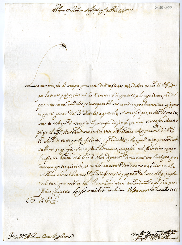 Lettera del vescovo di Volturara al cardinale Annibale Albani (1718 dicembre 10)