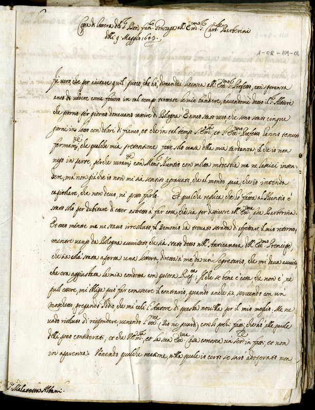 Lettera di Don Francesco Gonzaga al cardinale Barberini Francesco senior (1643 maggio 9)