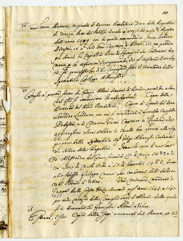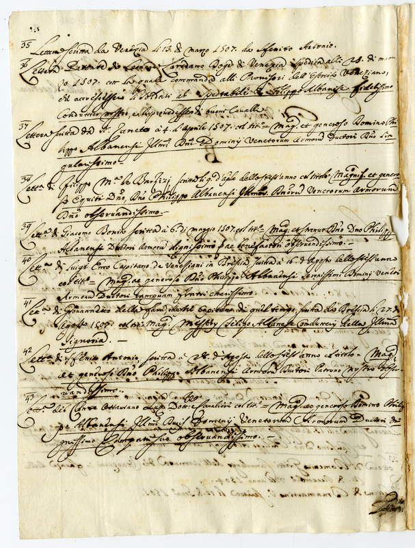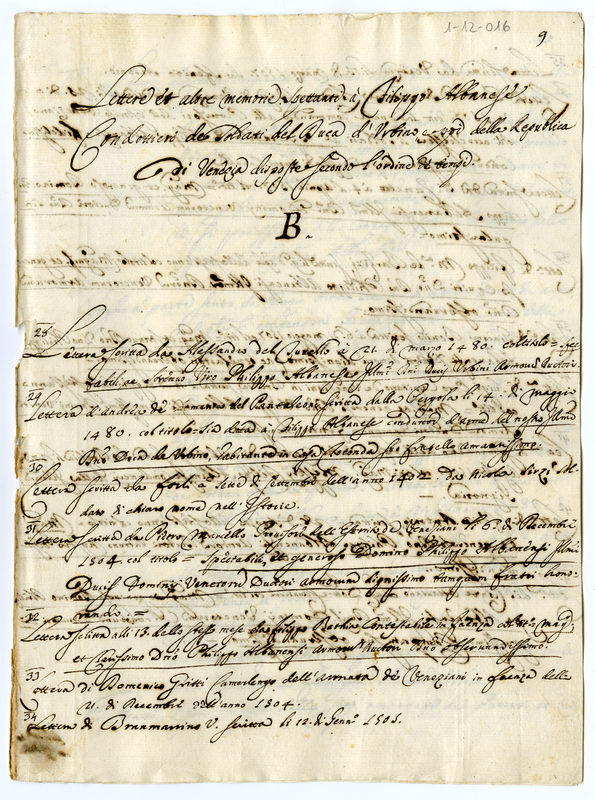 Lettere et altre memorie spettanti a Filippo Albanese condottiere de soldati del Duca d'Urbino e poi della Repubblica di Venezia disposte secondo l'ordine dei tempi. Fascicolo B