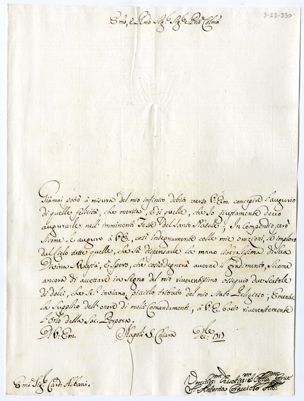 Lettera di Antonia Caracciolo abbadessa al cardinale Annibale Albani (1717 dicembre)