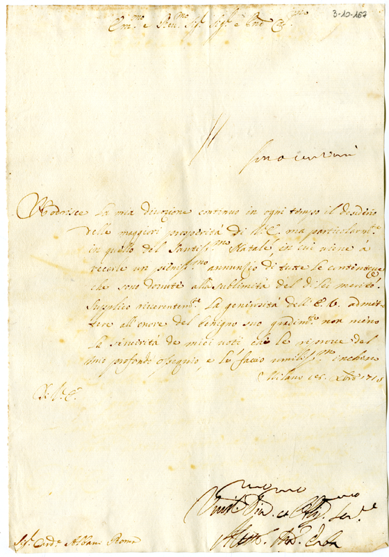 Lettera di Alessandro Maria Erba al cardinale Annibale Albani (1715 dicembre 18)