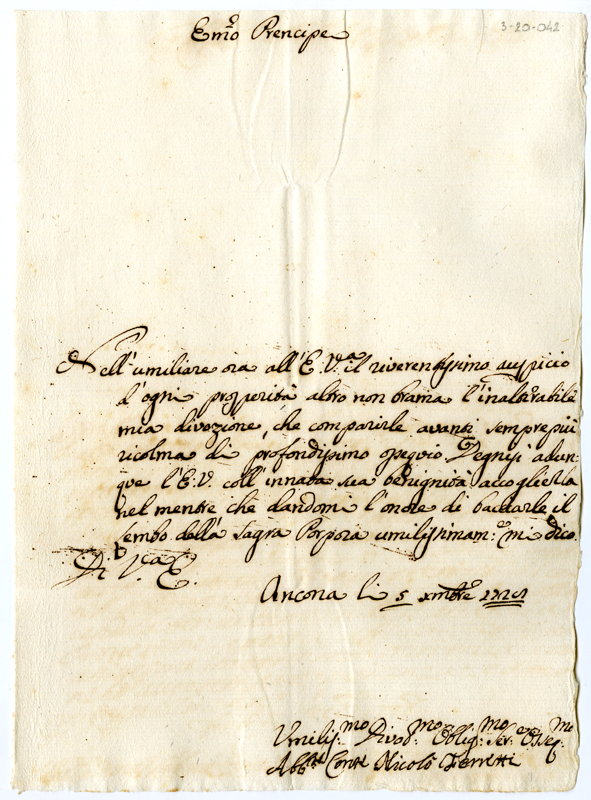 Lettera dell'abate Conte Nicolò Ferretti al cardinale Annibale Albani (1728 dicembre 5)
