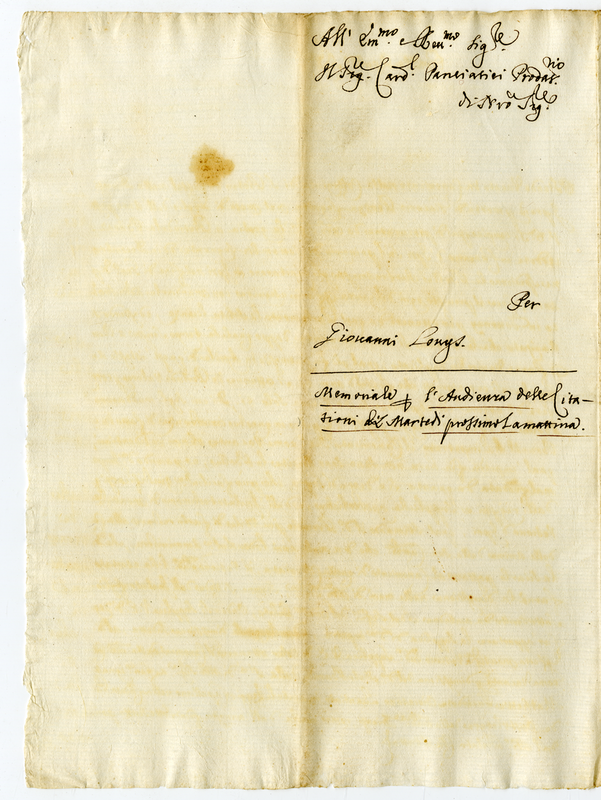 Lettera di Giovanni di Monte Agudo della diocesi di Compostela al Cardinale Panciatici (1689-1700)