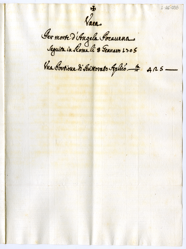 Porzione di scrittorato apostolica vacante per morte di Angela Pocavena (1705 gennaio 8)