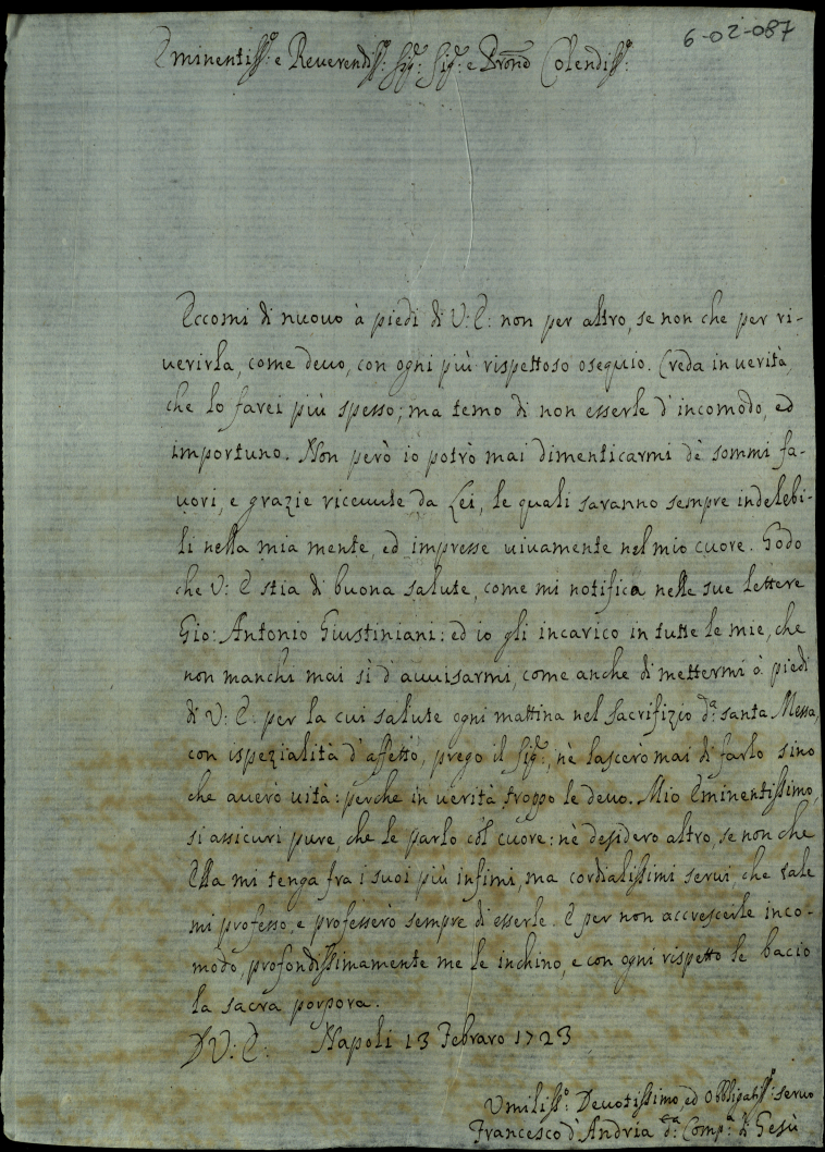 Lettere di complimento e di negozio. 1723. Semestre primo
