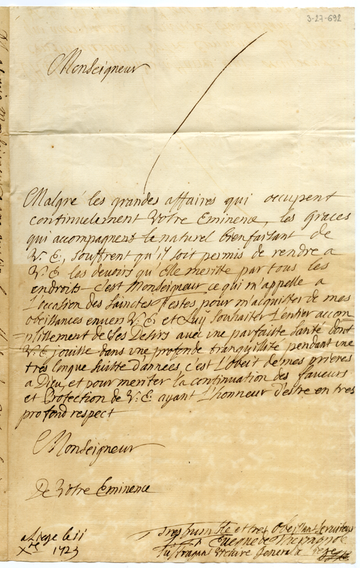 Lettera del vescovo di Thermopoli al cardinale Annibale Albani (1723 dicembre 11)