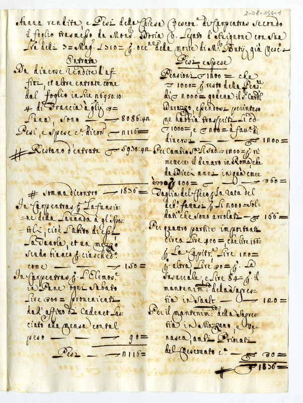 Entrate e spese annue della chiesa vescovile di Carpentras (1710)
