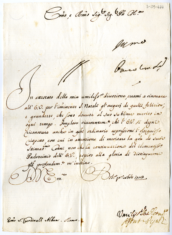 Lettera di Pepoli al cardinale Annibale Albani (1713 dicembre 1)