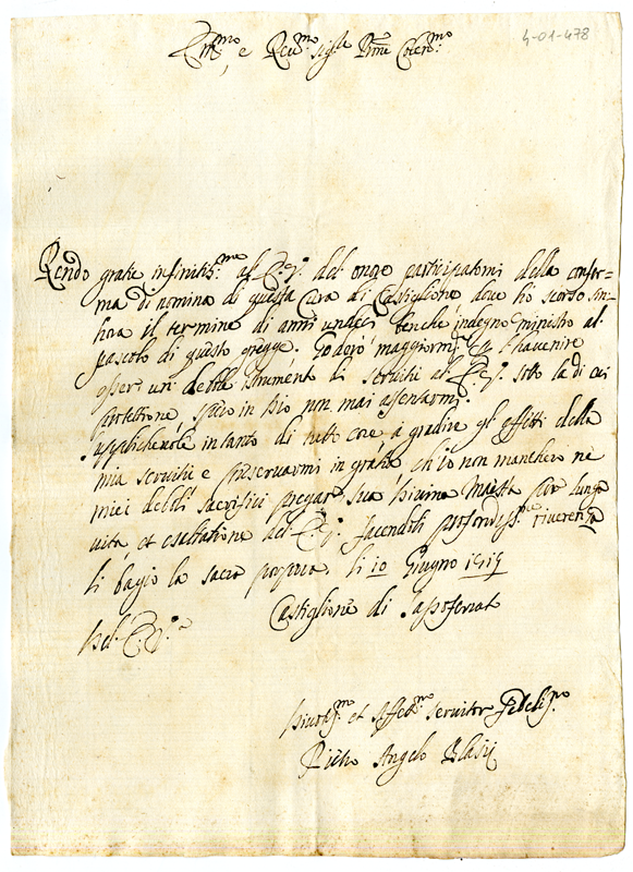 Ringrazia il cardinale per avergli confermato la parrocchia di Castiglione di Sassoferrato