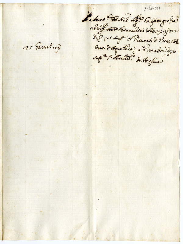 Concessione di due pensioni all'abate Bianchini (1691 gennaio 25)