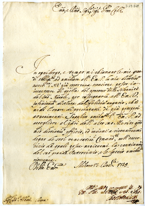 Lettera al cardinale Annibale Albani (1719 dicembre 13)