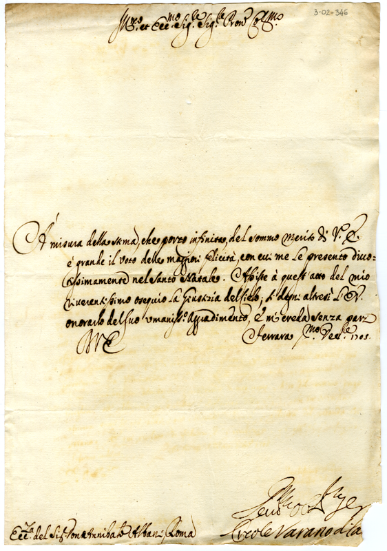 Lettera di Ercole Varano ad Annibale Albani (1705 dicembre 1)