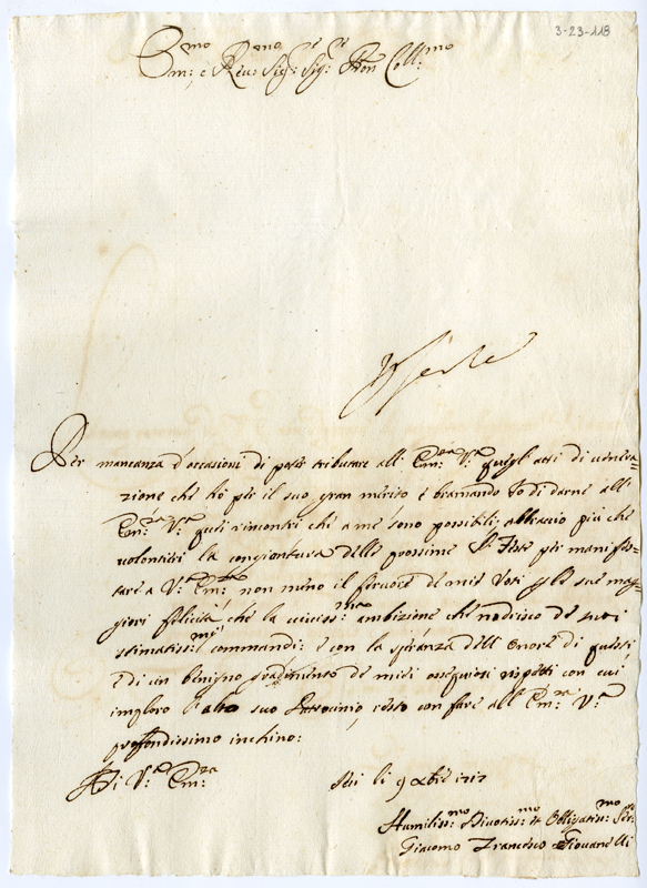 Lettera di Giacomo Francesco Giovanelli al cardinale Annibale Albani (1717 dicembre 9)