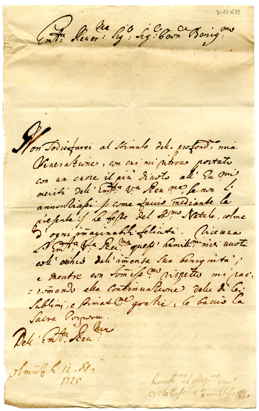 Lettera al cardinale Annibale Albani (1725 dicembre 12)
