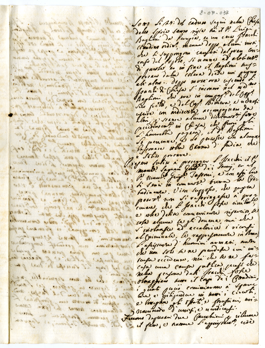 4. Sopra una rissa avvenuta nella chiesa dello Spirito Santo tra il padre Luigi Baglioni di Perugia e un certo Isacchi. Relazione (1700-1721)