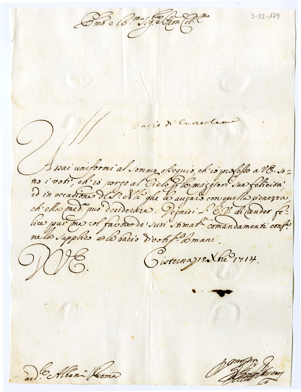 Lettera al cardinale Annibale Albani (1714 dicembre 15)
