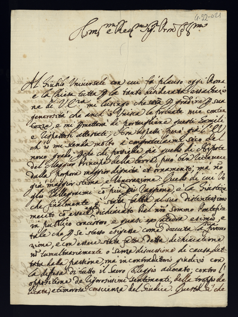 Lettere di congratulazioni per la promozione di Sua Eccellenza al Cardinalato