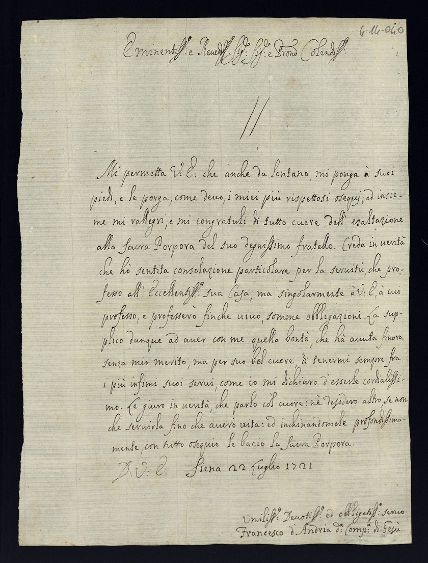 Lettere di congratulazione per l'esaltazione alla Porpora dell'eminentissimo cardinale Alessandro Albani