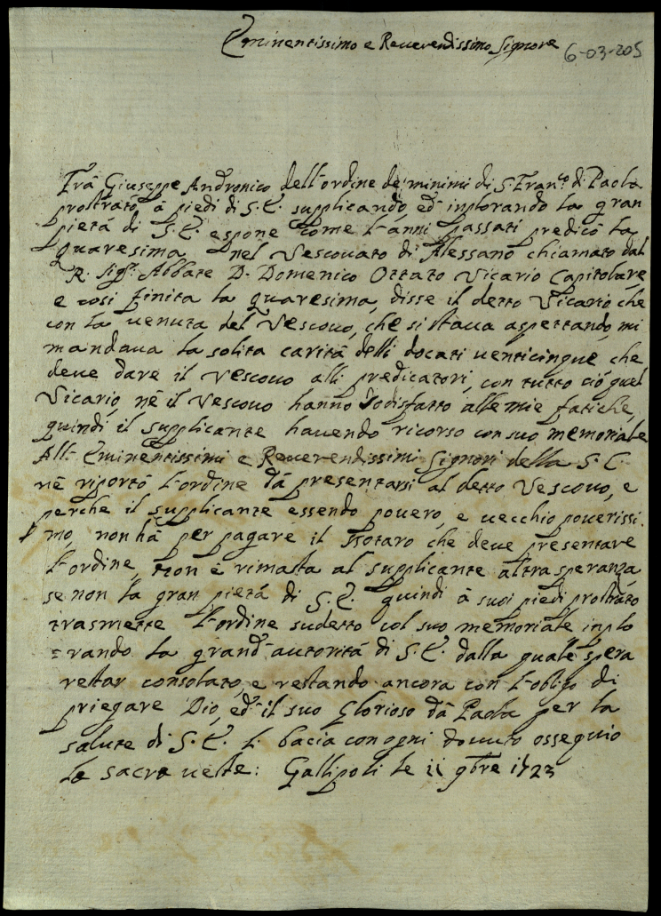 Lettere di complimento e di negozio. 1723. Semestre secondo