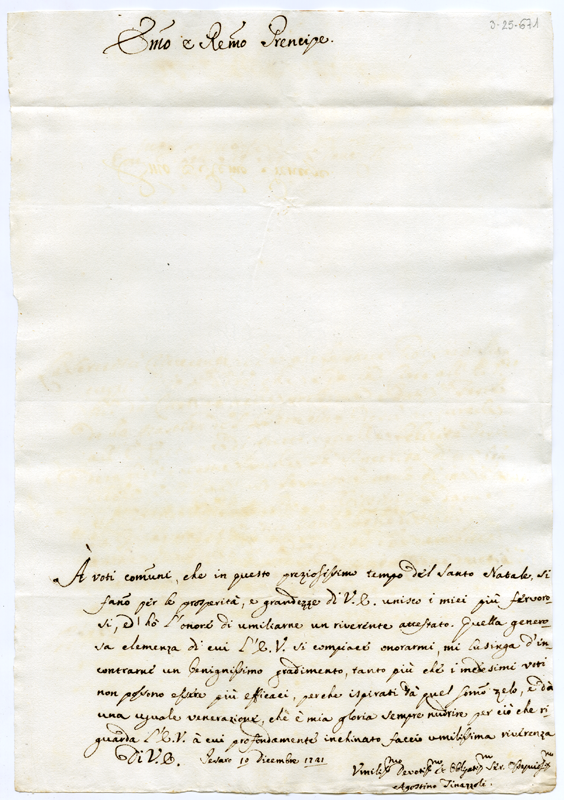 Lettera di Agostino Tinazzoli al cardinale Annibale Albani (1721 dicembre 10)