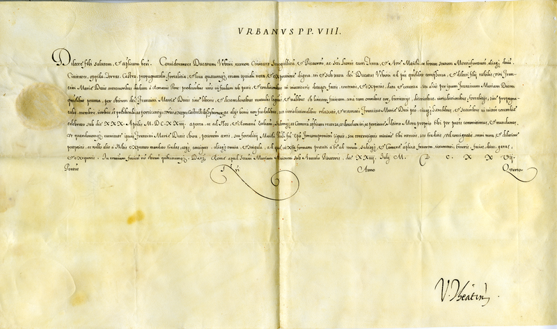 Breve di papa Urbano VIII al castellano di Maiolo