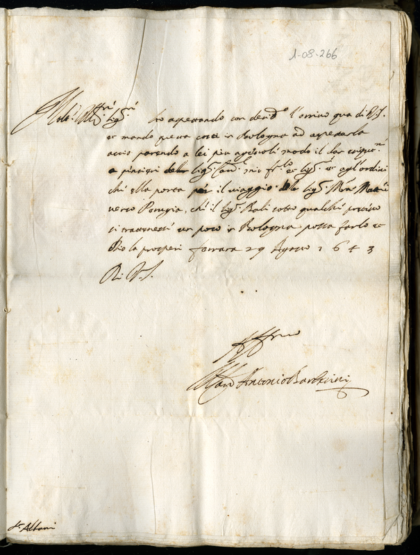 Lettera del cardinale Barberini Antonio senior a Malatesta Albani (1643 agosto 29)