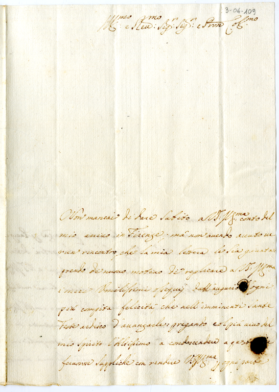 Lettera di Vincenzo Alamanni ad Annibale Albani (1707 dicembre 20)