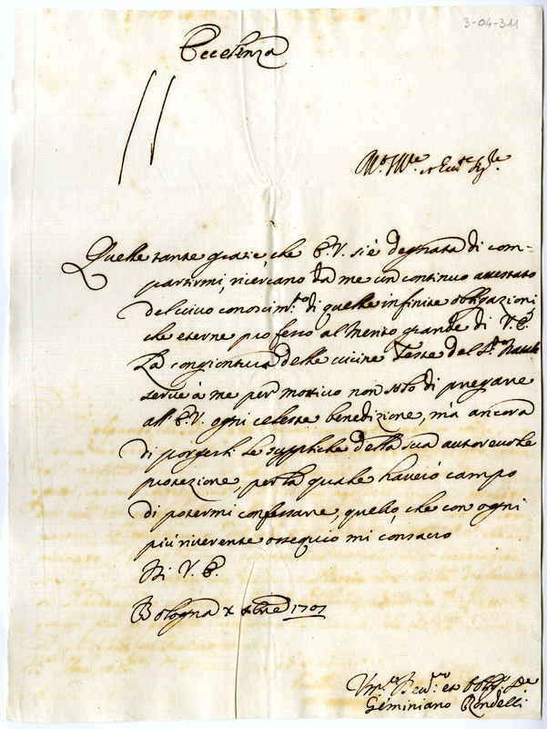 Lettera di Geminiano Rondelli ad Annibale Albani (1707 dicembre 10)