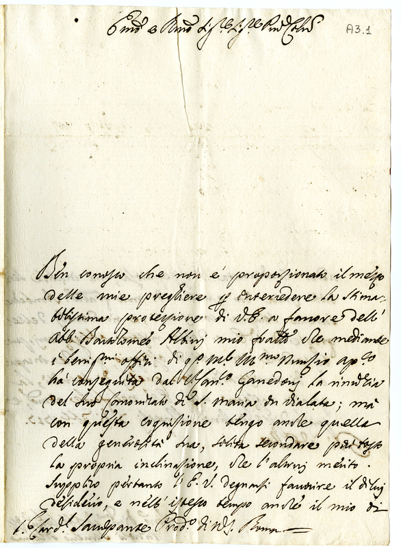 Memoriali, lettere, e suppliche di varie persone sopra diversi affari e bisogni presentate alla santa memoria di papa Clemente XI. 6