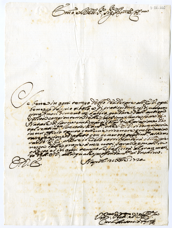 Lettera di Carl'Antonio Ferri al cardinale Annibale Albani (1720 dicembre 21)
