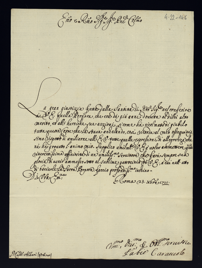 Lettere di congratulazioni per la promozione di Sua Eccellenza al Cardinalato