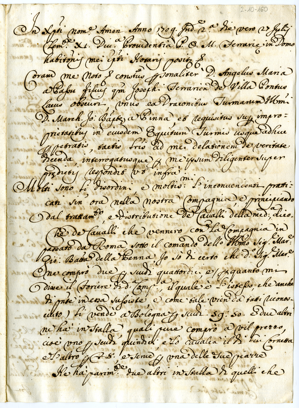 Atto notarile del notaio Michele Zeno di Ferrara (1709 luglio 27)