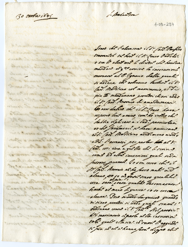 Minuta di lettera scritta a Malatesta Albani (1645 ottobre 30)
