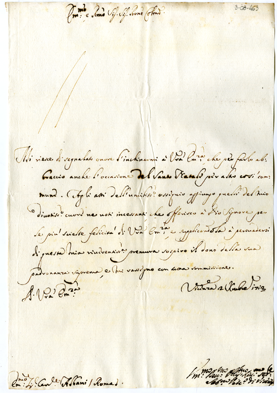 Lettera di Sebastiano vescovo di Vicenza al cardinale Annibale Albani (1712 dicembre 2)