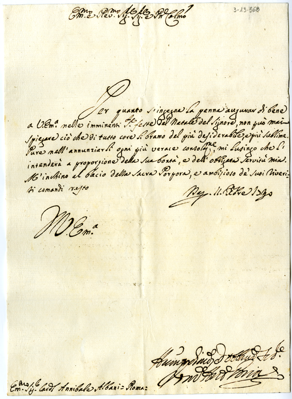 Lettera di Benedetto Antonio Doria al cardinale Annibale Albani (1730 dicembre 11)