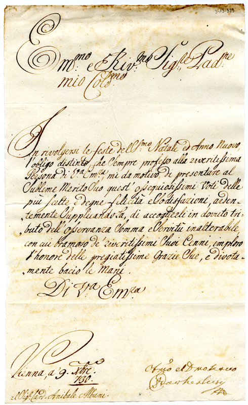 Lettera al cardinale Annibale Albani (1730 dicembre 9)