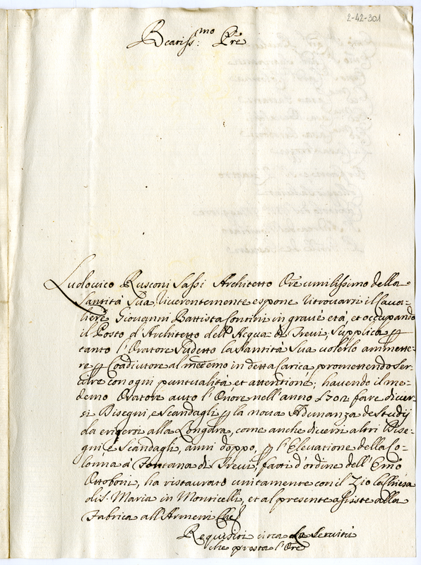 Lettera dell'architetto Ludovico Rusconi Sassi a papa Clemente XI (1700-1721)