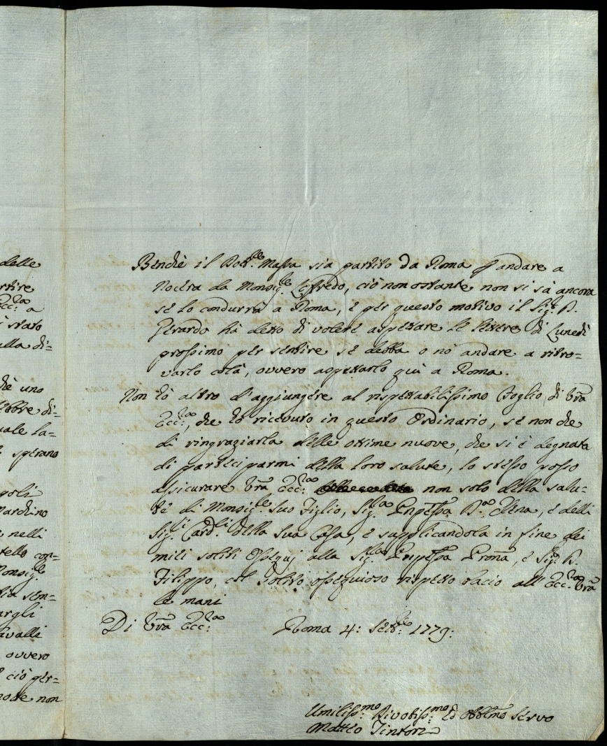 Lettere diverse ricevute dal principe Orazio Albani nella permanenza in Urbino del 1779