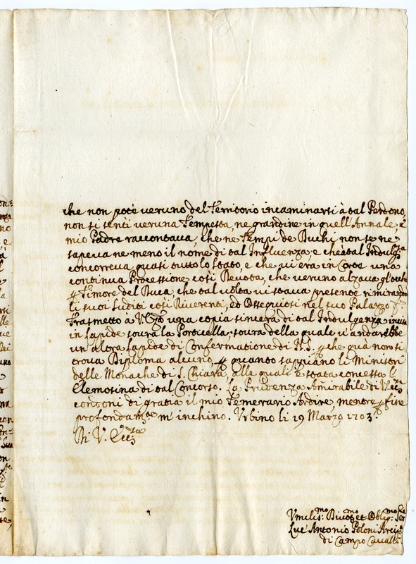 Lettera di Luc'Antonio Poloni Arcivescovo di Campo Cavallo (1703 marzo 19)