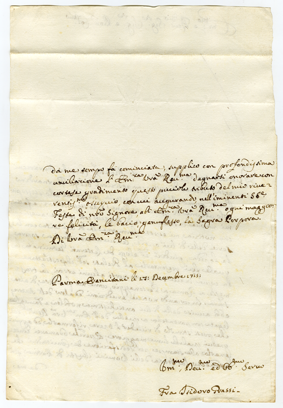 Lettera di Isidoro Grassi al Cardinale Annibale Albani (1715 dicembre 17)