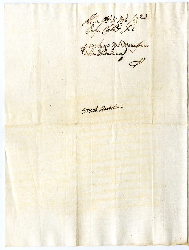Lettera di Orsola Bartolini a papa Clemente XI (1700-1721)