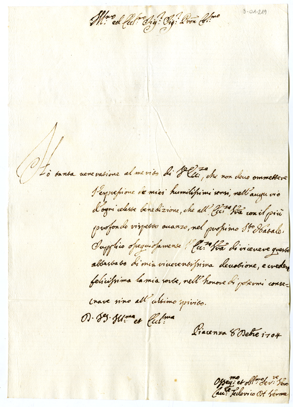 Lettera di Federico dal Verme ad Annibale Albani (1704 dicembre 8)